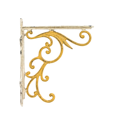 You can find them at yard sales, in thirft stores and in antique shops. Just google 'antique shelf brackets' and you'll come up with an endless list of reasonable functional accessories for your shelves, in a variety of styles, colors, shapes and sizes. Often you'll find a really great shape and detail, but it's rusty or needs a paint job. No worries, you can sand off the rust and add a coat of glossy paint.